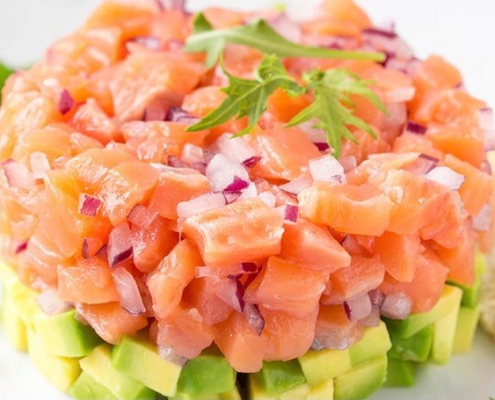 Descripción: Exquisito tártaro de salmón congelado. Basta únicamente con descongelar y a servir!